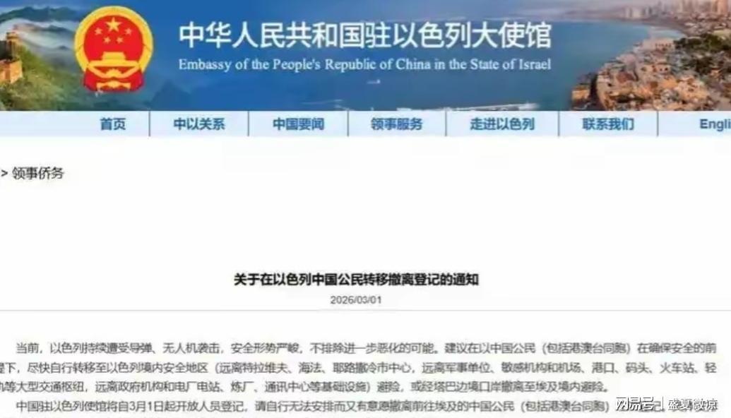 2026年3月1日凌晨,中国驻以色列使馆发布紧急撤离通知,明确将“台胞证”列为可登记凭证。